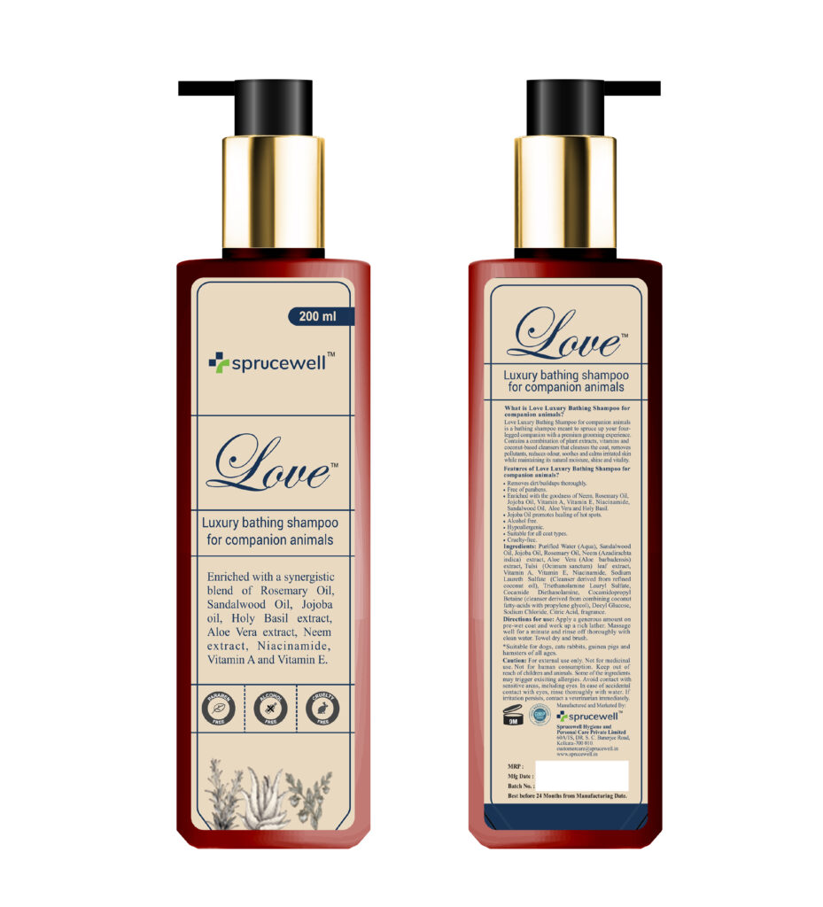 Apply a generous amount on pre-wet coat and work up a rich lather. Massage well for a minute and rinse off with clean water. Towel dry and brush thoroughly.